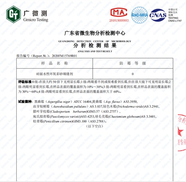 在防霉功能同樣表現突出,檢測報告顯示,可達到最高0級防霉標準。不會滋生細菌及發霉變黑,具有很好抗污自潔和防水功能,這對于長期處于潮濕及陰暗的環境來說,可長效保持潔凈。