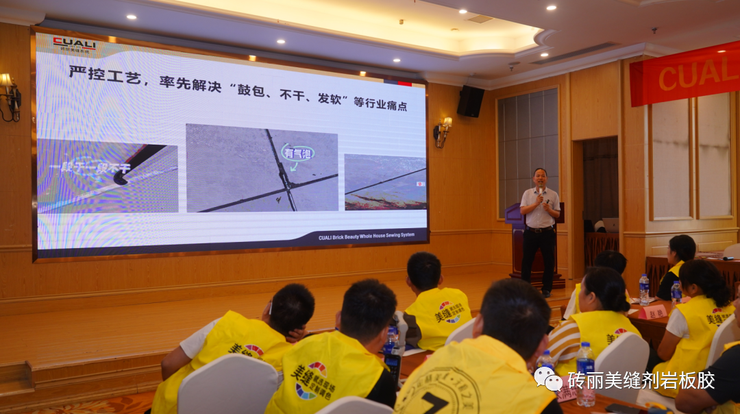 磚麗美縫賀總就醇和聚脲美縫的簡(jiǎn)介及市場(chǎng)推廣發(fā)表了重要演講,”磚麗是中國(guó)“慢干型”純聚脲美縫的開創(chuàng)者!不僅突破了純聚脲固化快的難題,實(shí)現(xiàn)了50分鐘壓縫的工藝,而且還在品質(zhì)上進(jìn)行了升級(jí),兼顧硬度和柔韌性,粘接力更強(qiáng)、更抗污”。接下來(lái)賀總就醇和聚脲的市場(chǎng)推廣分享了一套可操作的成功經(jīng)營(yíng)模式,相信在此次培訓(xùn)之后,大家一定能夠創(chuàng)造聚脲增長(zhǎng)的新篇章!